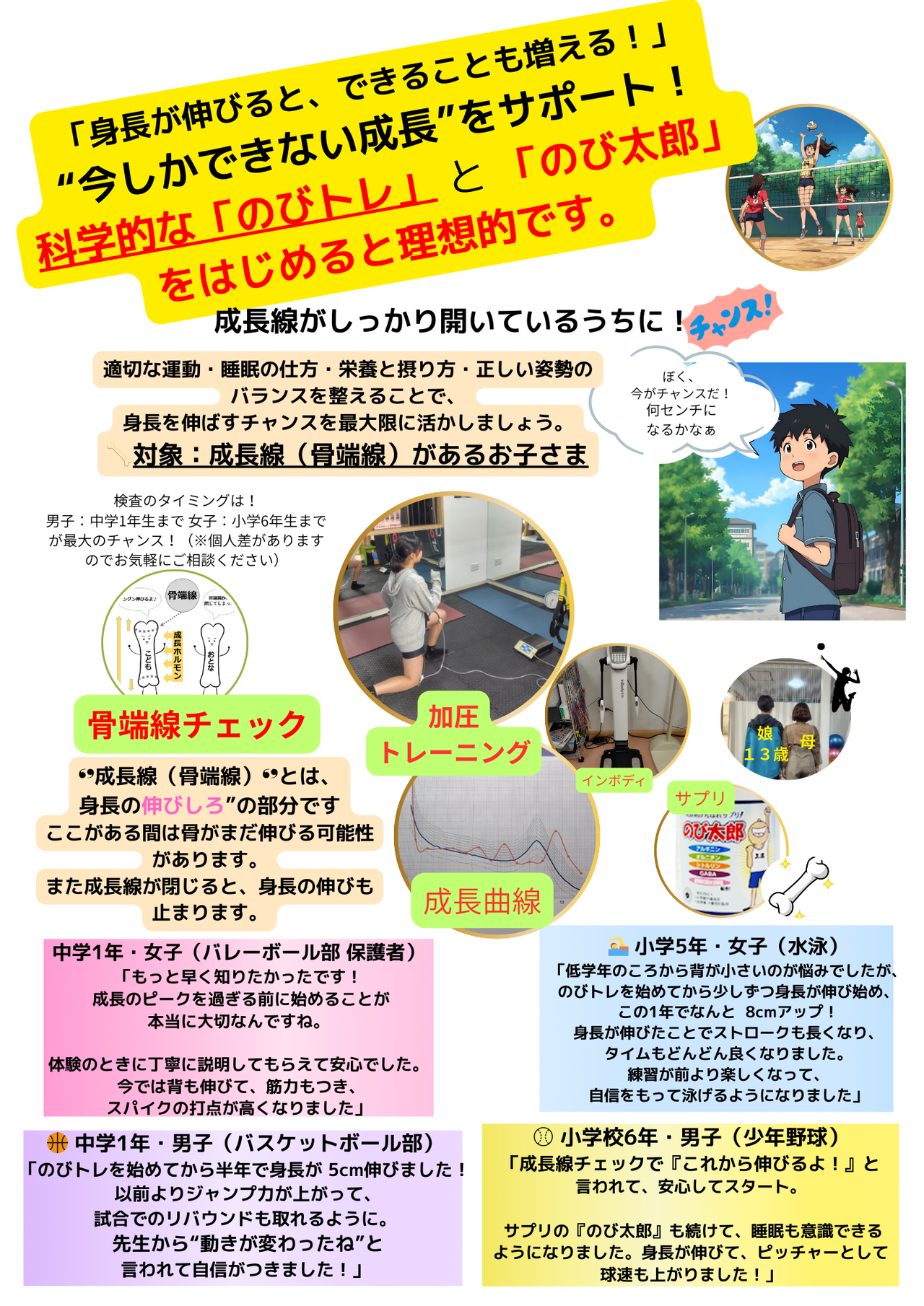 身長を伸ばすチャンスを最大限に活かしましょう。